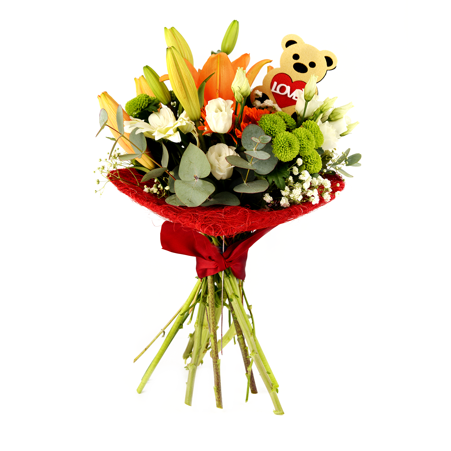 Bouquet de flor variada: Lilium, lisianthum, gerbera, margarita.